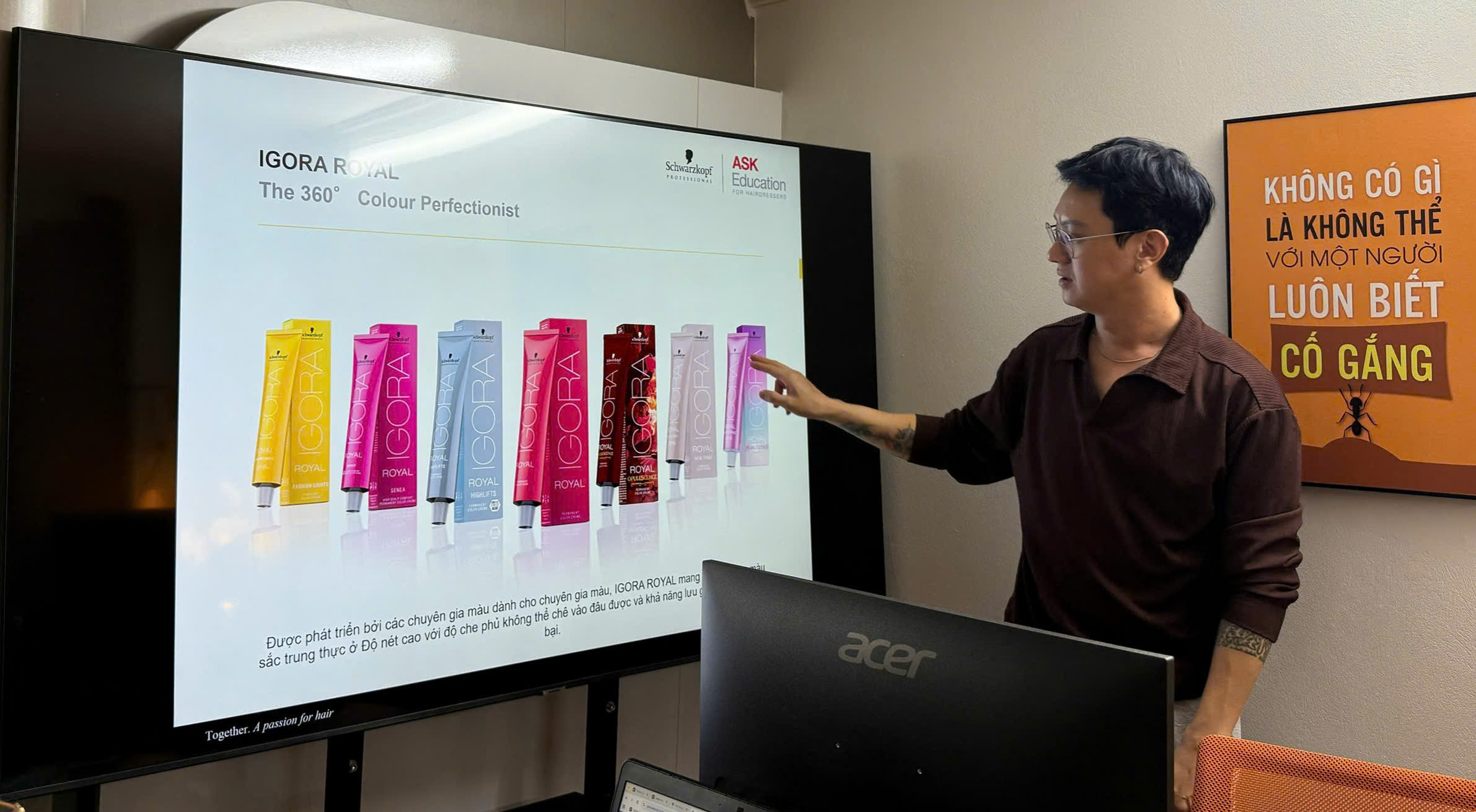 Thông qua phần phân tích kỹ thuật, công nghệ High Definition và hệ màu IGORA, anh Sơn không chỉ truyền kiến thức mà còn nhắc lại một điều quan trọng: sản phẩm tốt + hiểu đúng kỹ thuật = tạo nên chất lượng dịch vụ vượt trội.